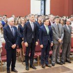 Sostinės širdyje – Vilniaus rotušėje pagerbti geriausi sostinės abiturientai – 156 pažangiausiems moksleiviams Vilniaus meras Remigijus Šimašius įteikė padėkas.
